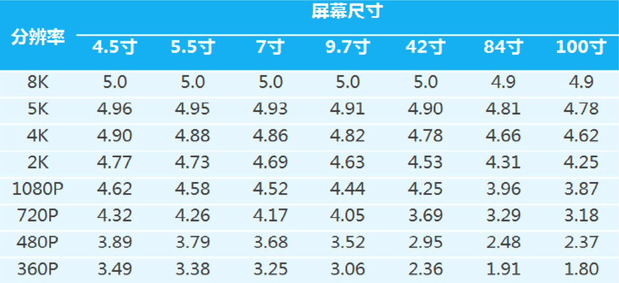 针对视频质量的各种相关因素,其中我们能取到的“典型分值”的“分”,主要是播放设备的屏幕尺寸及视频的分辨率,这两个相关度是比较大。
