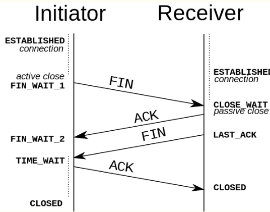 A 收到释放请求后,向 B 发送确认应答,此时 A 进入 TIME-WAIT 状态。该状态会持续 2MSL(最大段生存期,指报文段在网络中生存的时间,超时会被抛弃) 时间,若该时间段内没有 B 的重发请求的话,就进入 CLOSED 状态。当 B 收到确认应答后,也便进入 CLOSED 状态。